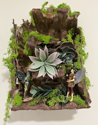 Rankų darbo samano paveikslai, kurie ilgai išlieka žali ir gyvi.
